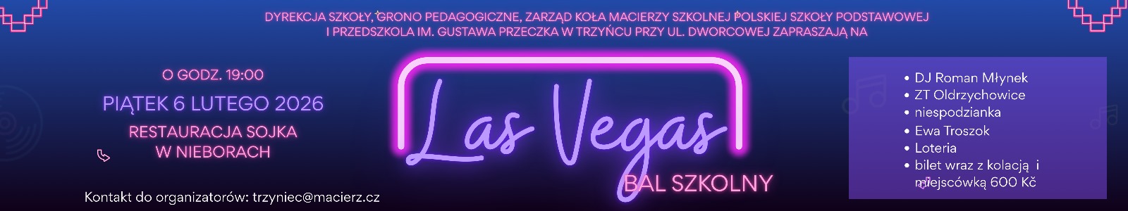 Macierz Szkolna w Trzyńcu serdecznie zaprasza na Bal pt. "Las Vegas", który odbędzie się w piątek 6 lutego 2025 od godziny 19:00 w restauracji Sojka w Nieborach.